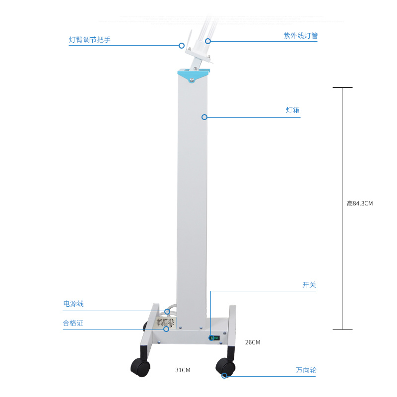 Nice price Portable 80W ultraviolet light air purifier car with CE Rosh for hospital home officeUV-Lamp Sterilization Cart With 360 wheel, convenient to moveTurn on with voice reminder, make sure all people leave the area before it start to workAutomatic delay 8 seconds to turn on, in order ......