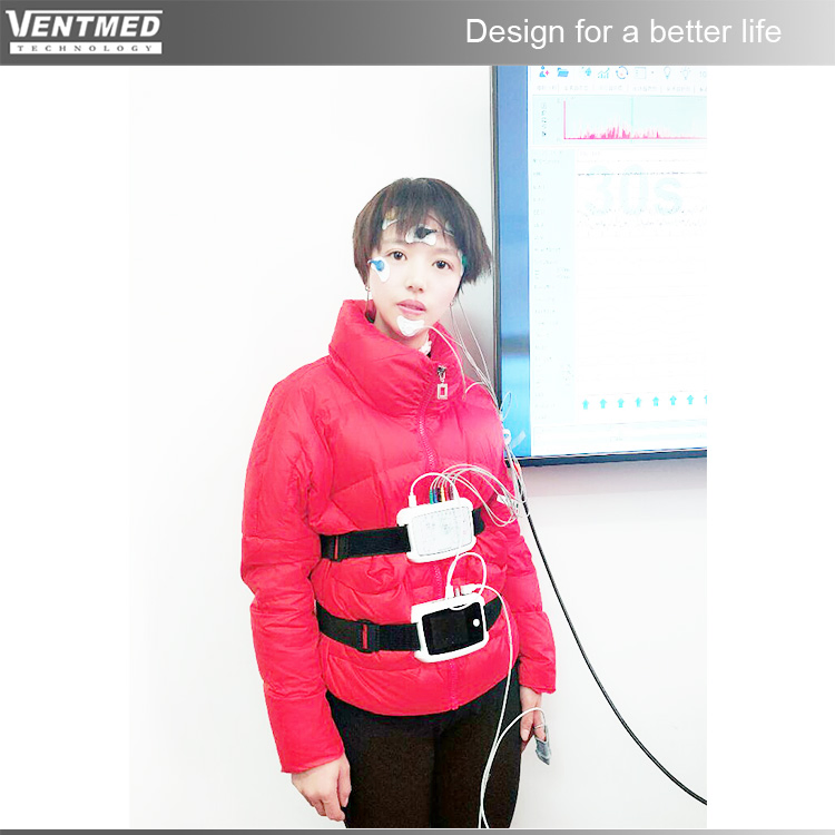 Accessories included connective lines, EEG lead wire, ECG lead wire, fixing band, Spo2 sensor, nasal cannula etc. It can record EEG, ECG, EOG, EMG, snoring, nasal airflow, SpO2, chest movement, abdomen movement, leg movement, pulse, pulse waveform, body position, body movement and CPAP pressure.